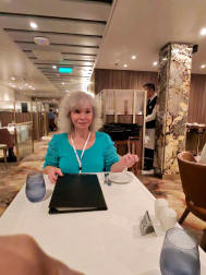 This is Carol in the Eclipse Dining Room. Lou asked me to make sure you notice that there is no bread on the table. :-) We had to ask for bread 2 to 3 times at every meal before we got it. The staff-to-passenger ratio on the ship was not great. We were told that, rather than transferring plenty of experienced staff to the Sun Princess, most of the wait staff were inexperienced. |