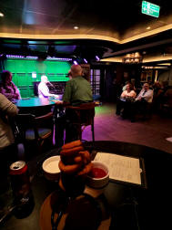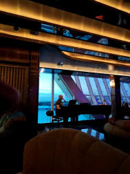 Lou loved the fish and chips....well, the fish anyway. Kevin Brando is the pianist/singer. Very smooth voice, great on the piano. He was very funny and very entertaining. We went to several of his shows and sang along. |