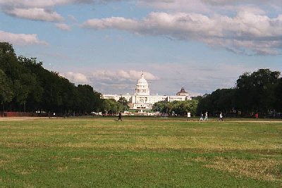 The view of the Capitol Building from the National Mall.