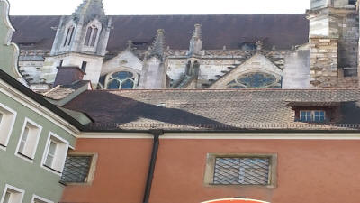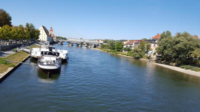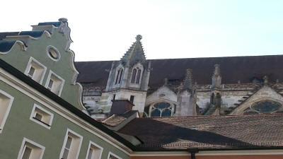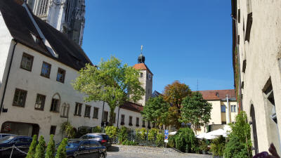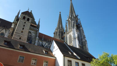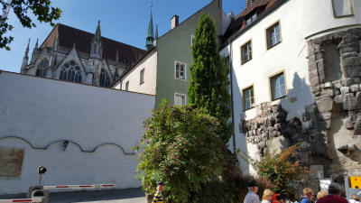 Between 1945 and 1949, Regensburg was the site of the largest Displaced persons (DP) camp in Germany. At its peak in 1946–1947, the workers' district of Ganghofersiedlung housed almost 5,000 Ukrainian and 1,000 non-Ukrainian refugees and displaced persons. With the approval of U.S. Military Government in the American Allied Occupation Zone, Regensburg and other DP camps organised their own camp postal service. In Regensburg, the camp postal service began operation on December 11, 1946.Our tour: Today we took a break from all those tours. We walked through town on our own. The scenic town of Regensburg, considered one of Europe’s best-preserved medieval cities. We saw groupings of 13th- and 14th-century church spires towers. Additionally we looked at the 12th-century Old Stone Bridge, St. Peter’s Cathedral and a number of idyllic courtyards.