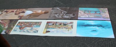 pictures on the street, see a cop car coming, scoop them up, try to look