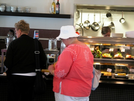 Snacky time. Karen got Lou an espresso and herself