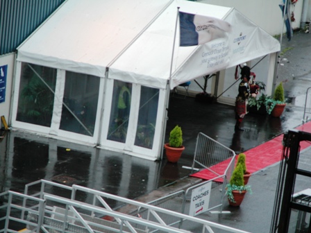it was raining pretty hard and we had no umbrella to hold over it as Lou