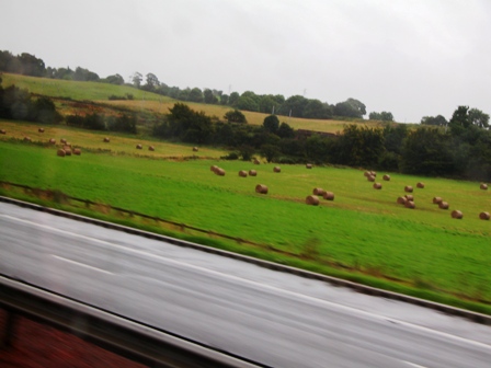 Endless green fields, as seen from the bus...