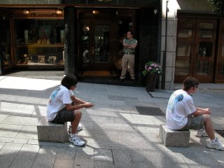 The boys are waiting outside the jewelry store, which was