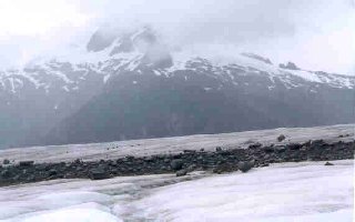 What is this? Well, if I had kept walking, then I wouldn't be here to tell you. This is looking over the side of the Mendenhall glacier at another glacier in the background.