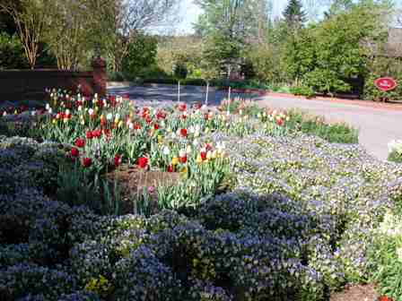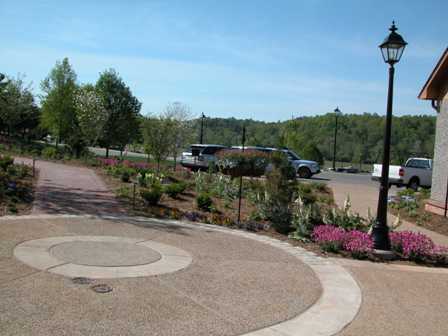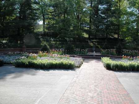 Here is the fountain and flower bed that are in front of