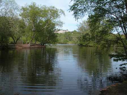 pond for the house. Can you see the house, up on the