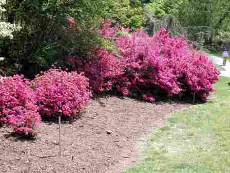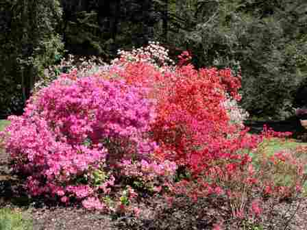 There were many pinks and orangey coral azaleas, but only